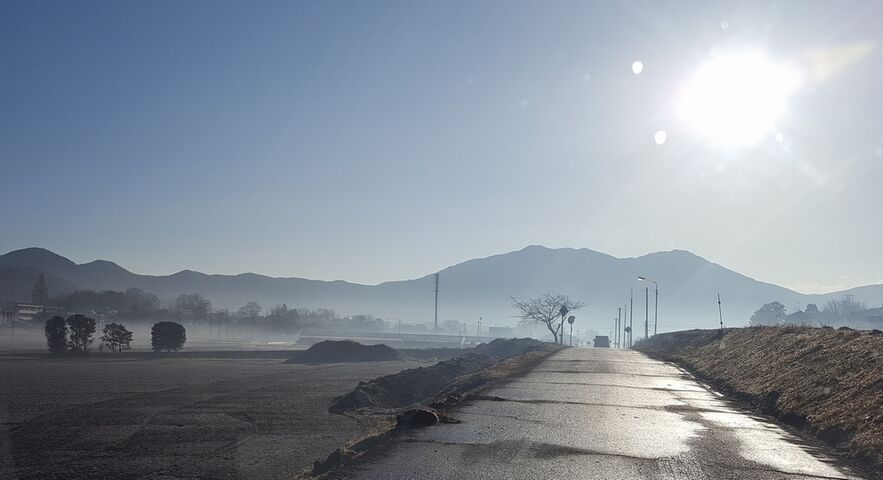 なんとも墨絵のような風景に思わず車内よりパチリ