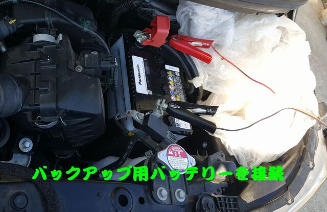 新しいバッテリーに接続が終了したら、バックアップ用のクリップを外して(プラス、マイナス順番で)完了