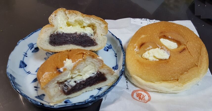 小豆あんを餅、そしてパイ生地で包んで焼いたもの