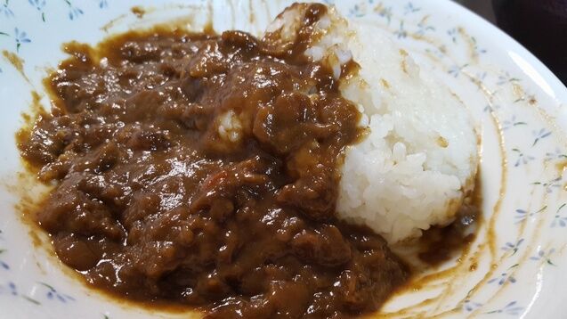 玉ネギ、生姜を炒めて、ミニトマト、トマトソース、大豆(缶詰)を加えて煮込んだ具材に、カレールーを加えたもの