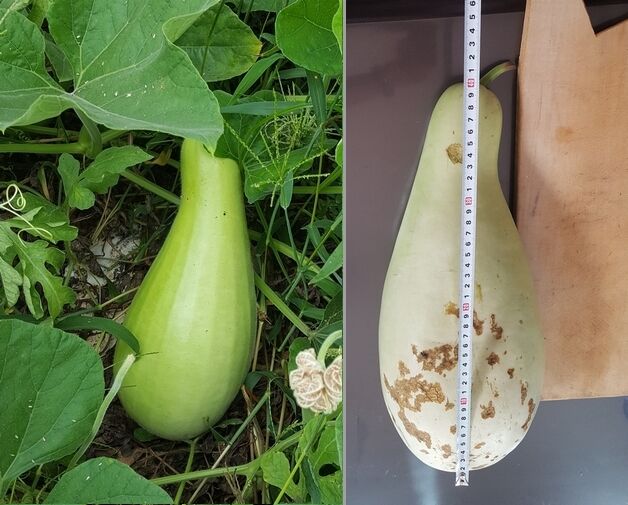 下の写真の左が畑で実を付けたかんぴょう